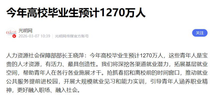 2026 年是 1270 万,是 1999 年扩招初期的十几倍。但企业的招聘需求,压根没随着同比例涨。这不是商场出了问题,是当年策略的延时效应,账单到期了,利滚利,得一齐还。