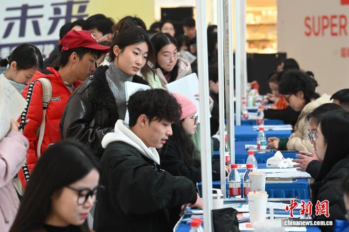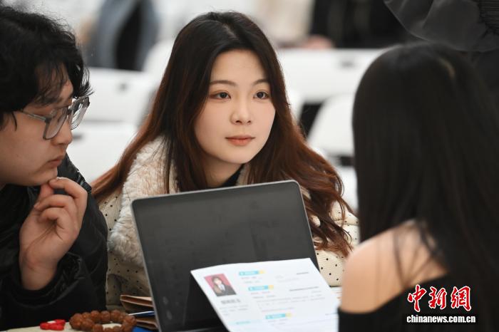 靠谱的滚球app中国官网江苏南京,大学生在招聘会上商榷洽谈。中新社记者 泱波 摄 " />