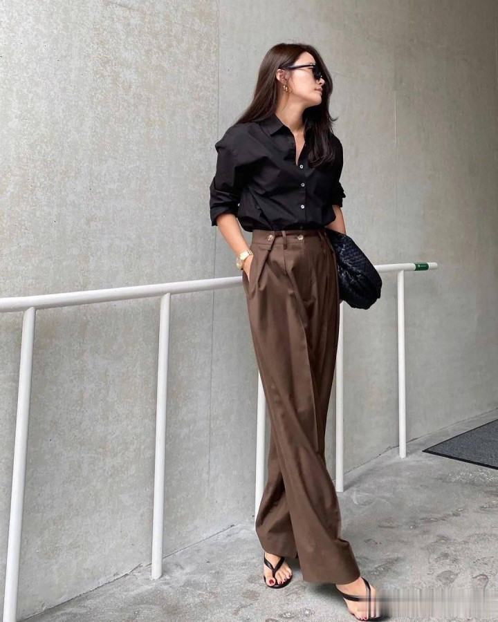 聘请垂坠感好的面料,比如醋酸、高捻羊毛混纺大致有筋骨的精纺棉。裤长最佳能盖住脚面的一半,搭配一对浅口鞋或乐福鞋,走路时裤摆跟着步调轻轻浪荡,那种流动感会让你所有这个词这个词东谈主齐显得微小起来。