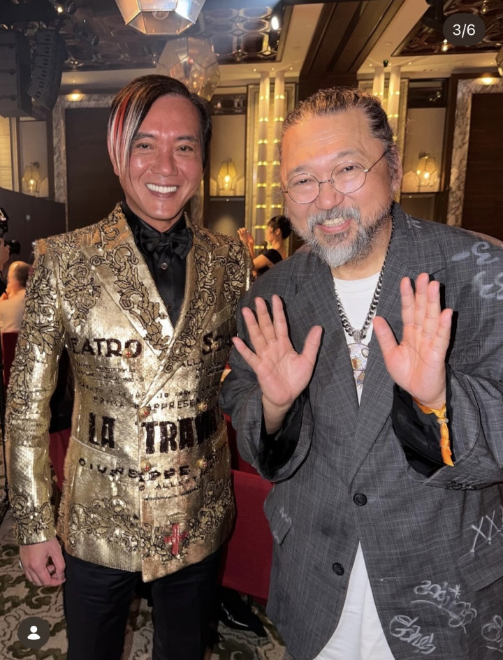 洪永时一向很高调,也热衷外交,出席晚宴天然就不仅仅走个红毯秀那么浅易,更是要忙着在场内外交。进入艺术晚宴的有不少国际级的艺术大家,包括日本的村上隆等齐在场,洪永时在场内就忙着要与这些艺术大家同样、合照,其内助则是坐在宴席上抚玩艺术饰演,总之佳偶俩即是各有所忙,额外活跃。