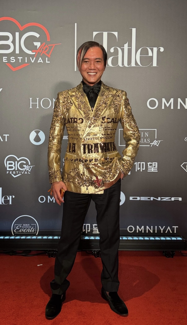 洪永时佳偶在白昼参不雅了艺术展之后,晚上又现身艺术展的晚宴。而出席晚宴的时分,佳偶俩又以另一套造型示东谈主。对比起白昼的造型,佳偶俩晚间的造型更无垠,洪永时换下了孔雀装,穿上了金色印花的西装外衣,这件金色外衣上头印着多样斑纹,还有玄色的字体,黄金城官网相配猖獗,而他下身穿了玄色的西裤,内里搭配了玄色的衬衣以及领结,很有土豪的既视感。洪永时的内助也换上了白色的晚礼裙,还拎了一件皮草披肩,的确孤苦贵气。
